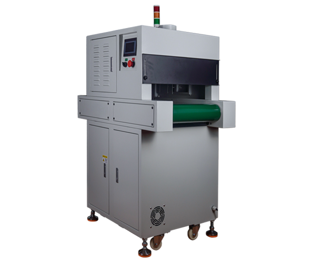 2、uv固化機(jī)設(shè)備提供連續(xù)模式和固定照射模式可選,連續(xù)模式下,點(diǎn)擊啟動按鈕,UV機(jī)傳送帶及UVLED一直工作,點(diǎn)擊停止按鈕停止UV機(jī)工作;固定照射模式下,點(diǎn)擊紫外線uv固化機(jī)啟動按鈕,UV機(jī)傳送帶開始工作,當(dāng)物料檢查傳感器感應(yīng)到產(chǎn)品后,傳送帶停止,UVLED開始照射并計時,計時到后,傳送帶啟動,N秒內(nèi)沒有檢查到產(chǎn)品(時間可設(shè)),UVLED關(guān)閉,否則UVLED保持運(yùn)行。